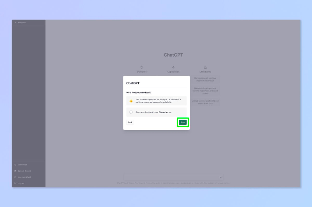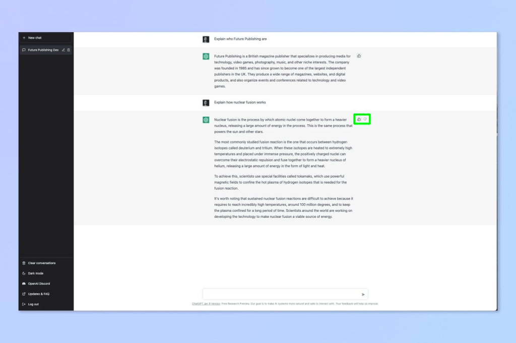 12. OpenAI want feedback for ChatGPT, so select the like/dislike button next to an answer to submit your thoughts.